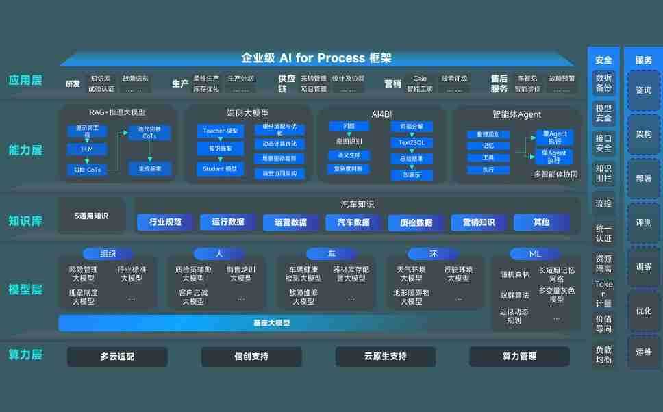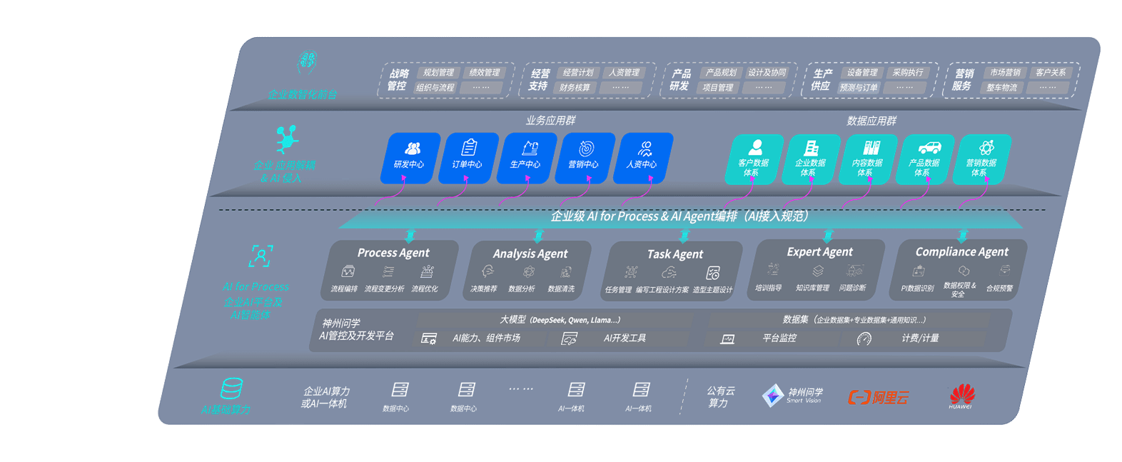 端到端的一站式AI工作空间深度融合了从企业战略规划到日常经营的全流程业务板块,,,定向解决车企内部领域多、、、部门多、、、、链条长、、、、场景碎片化等难题,,,支持车企快速构建以AI为核心的生产力写作体系,,,,实现任务执行与AI能力的无缝集成与交互